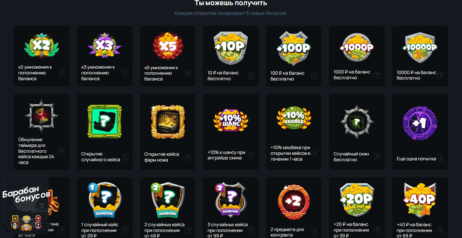 Otwarcie skrzynek jest dostępne 24/7 i nie wymaga klucza. Skórki można sprzedawać, wymieniać, ulepszać lub wypłacać do swojego ekwipunku Steam w dowolnym momencie. Ponadto platforma oferuje atrakcyjne bonusy i posiada program partnerski, który umożliwia użytkownikom dodatkowy zarobek.