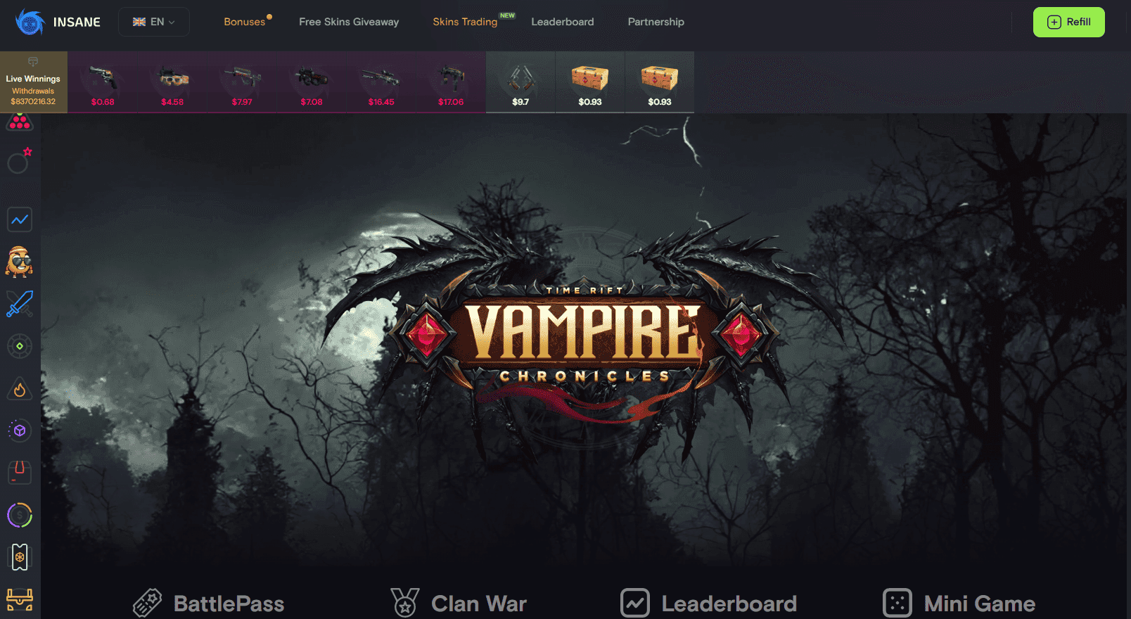 O Insane oferece condições atrativas de uso, o que garante seu lugar no ranking de sites de caixas de CS2. Entre os principais benefícios estão: